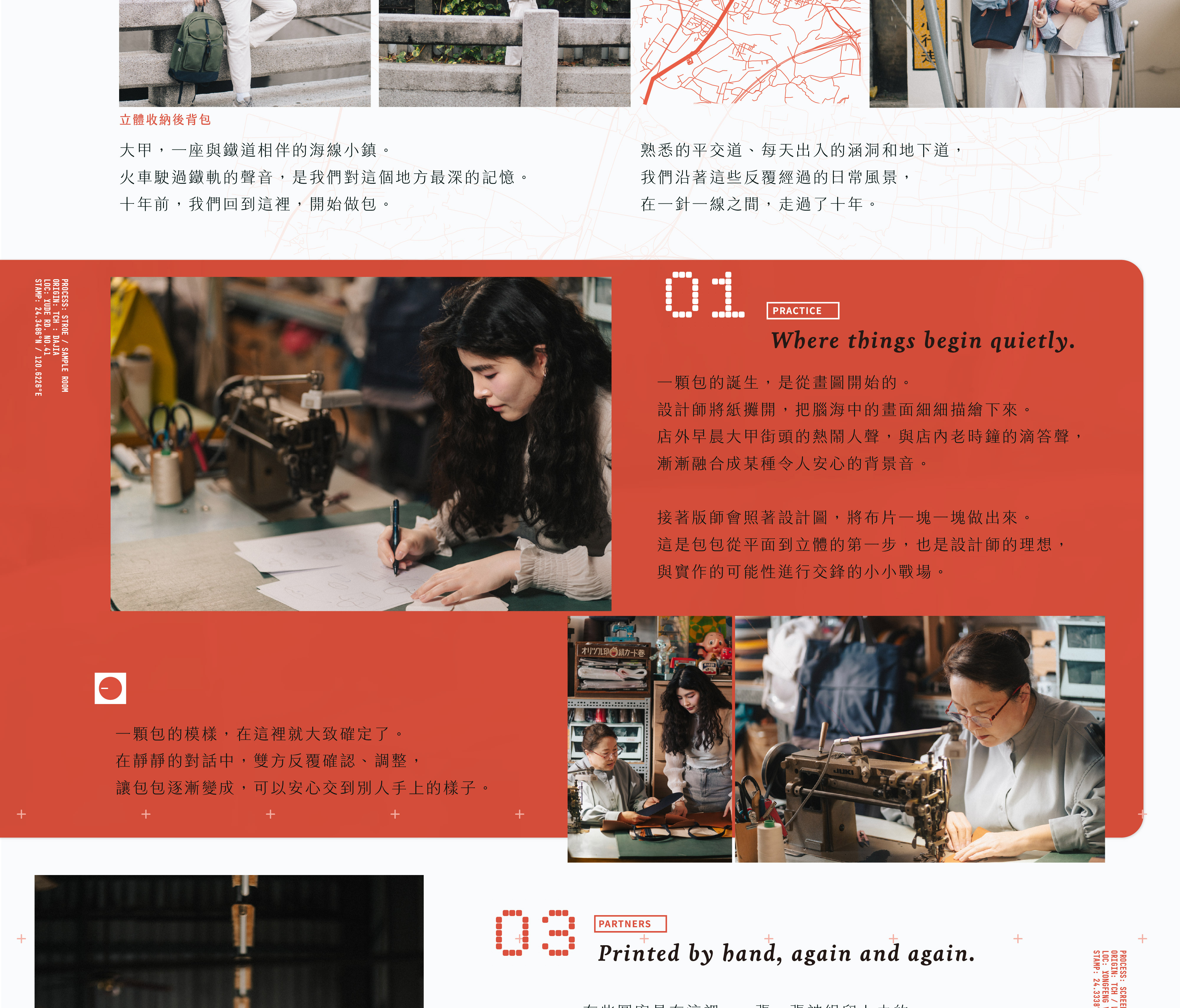 匠師們留意每一個細節,從布料裁剪、拉鍊五金選製、車縫線搭配。